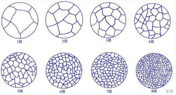 由圖1可知,晶粒度級別越大,實際晶粒就越小。其中1-3一般被認為是粗晶粒,4-6號為中等晶粒,7-8號為細晶粒。