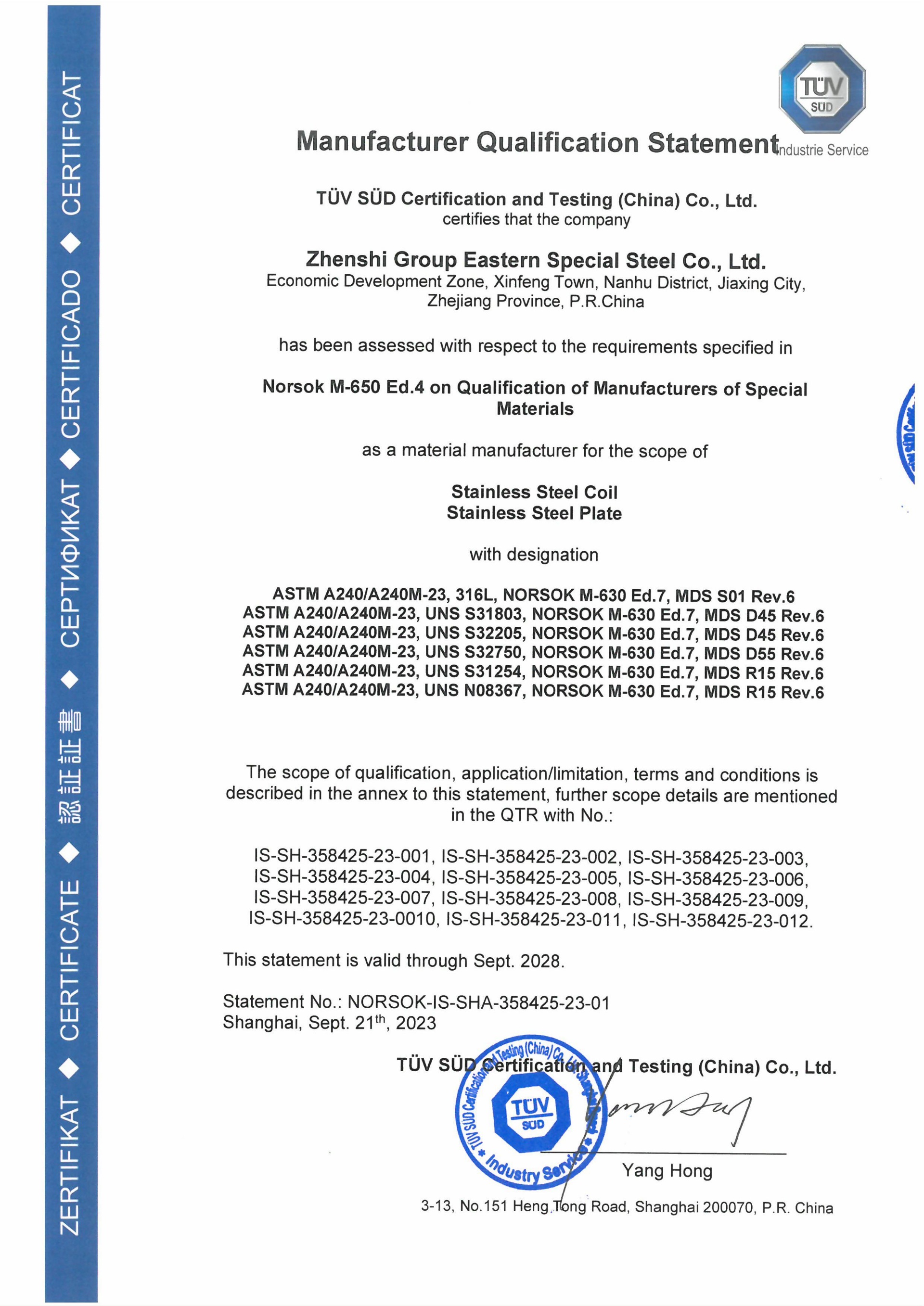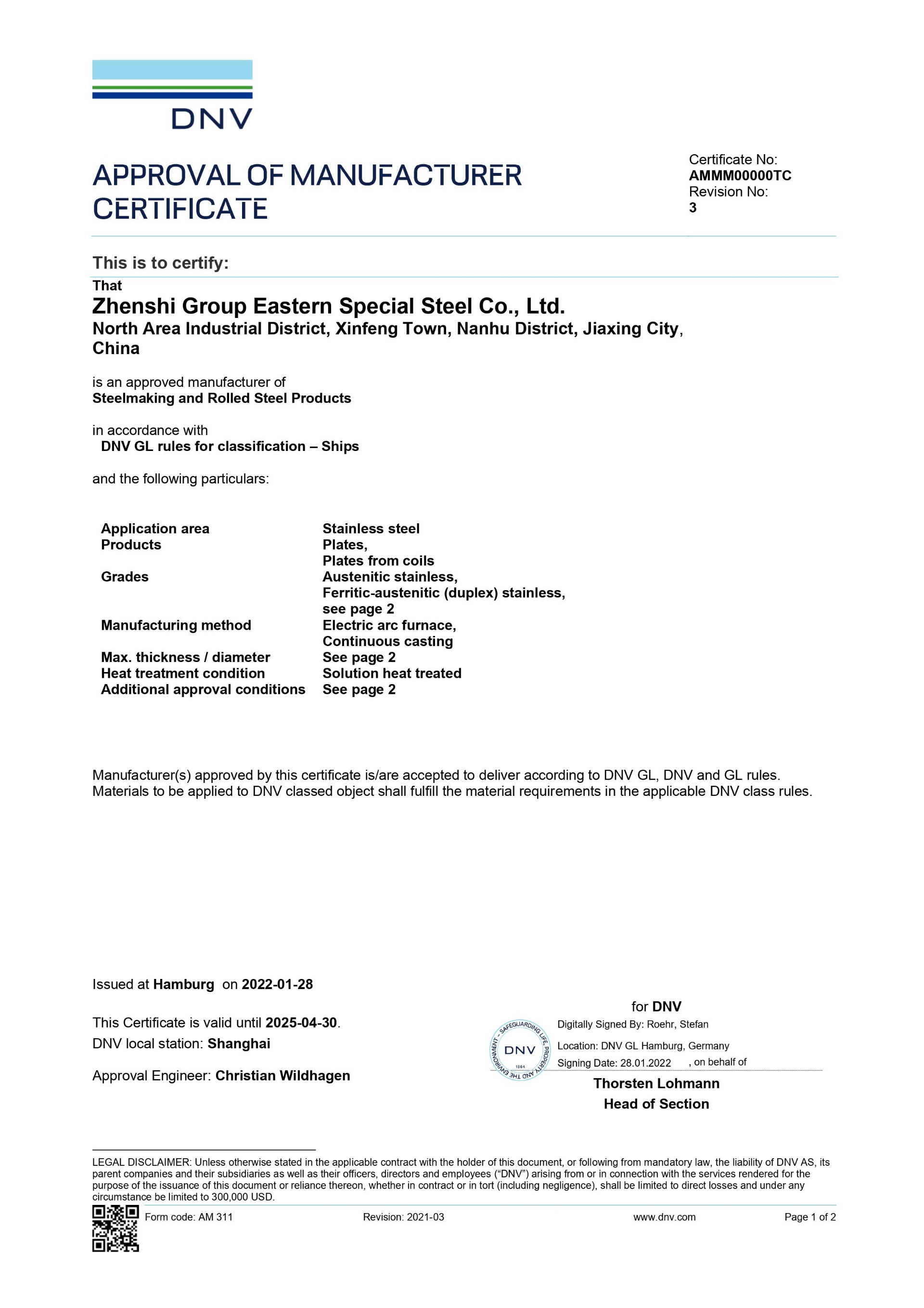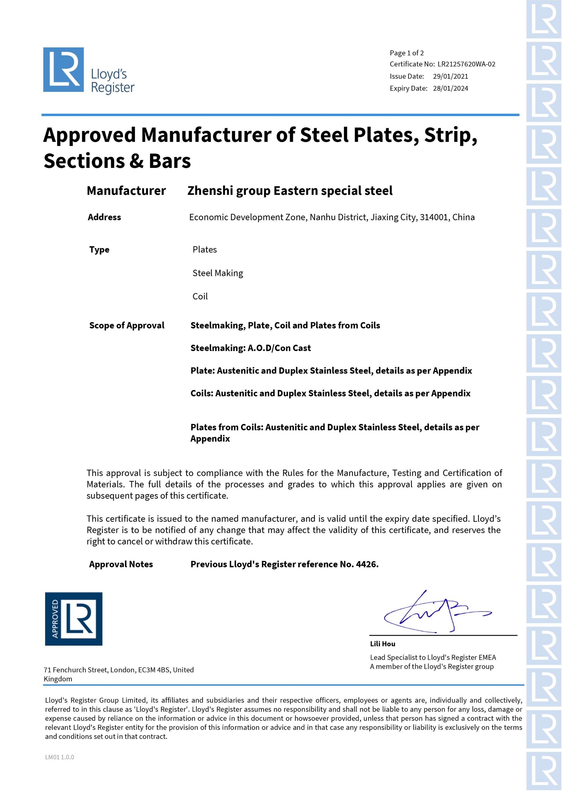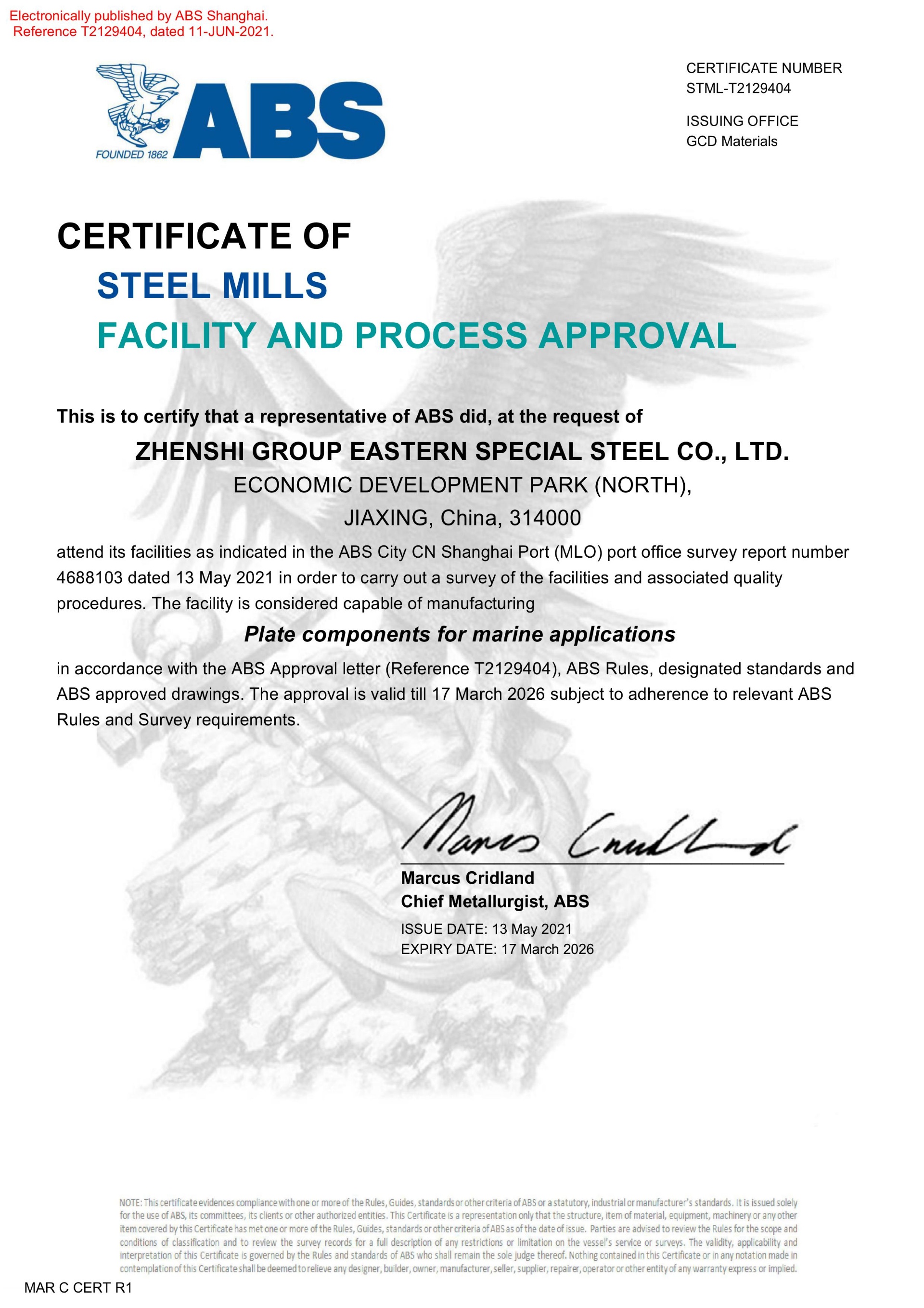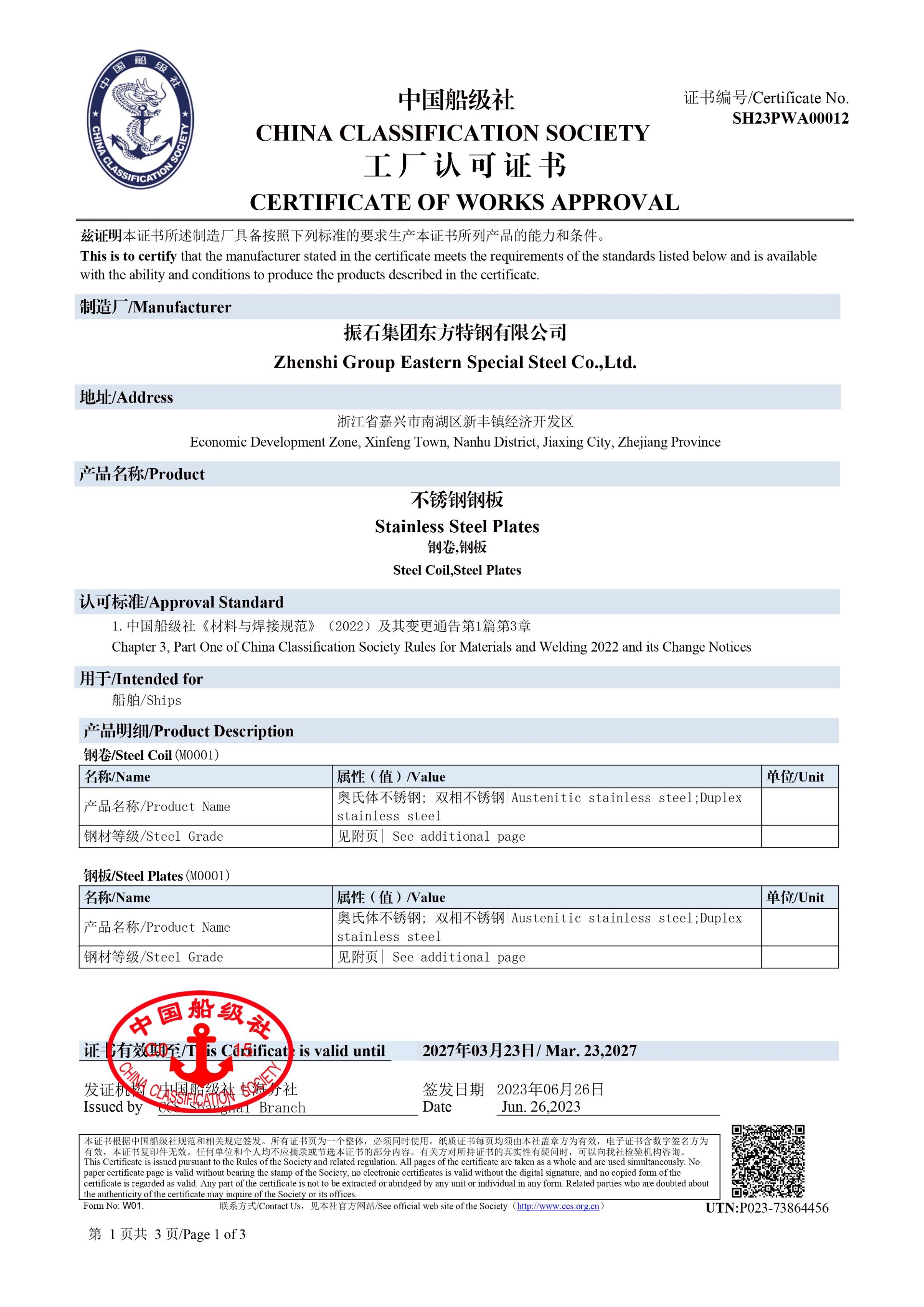 同時還取得了中國、美國、法國、挪威、德國、英國等[船級社認證]