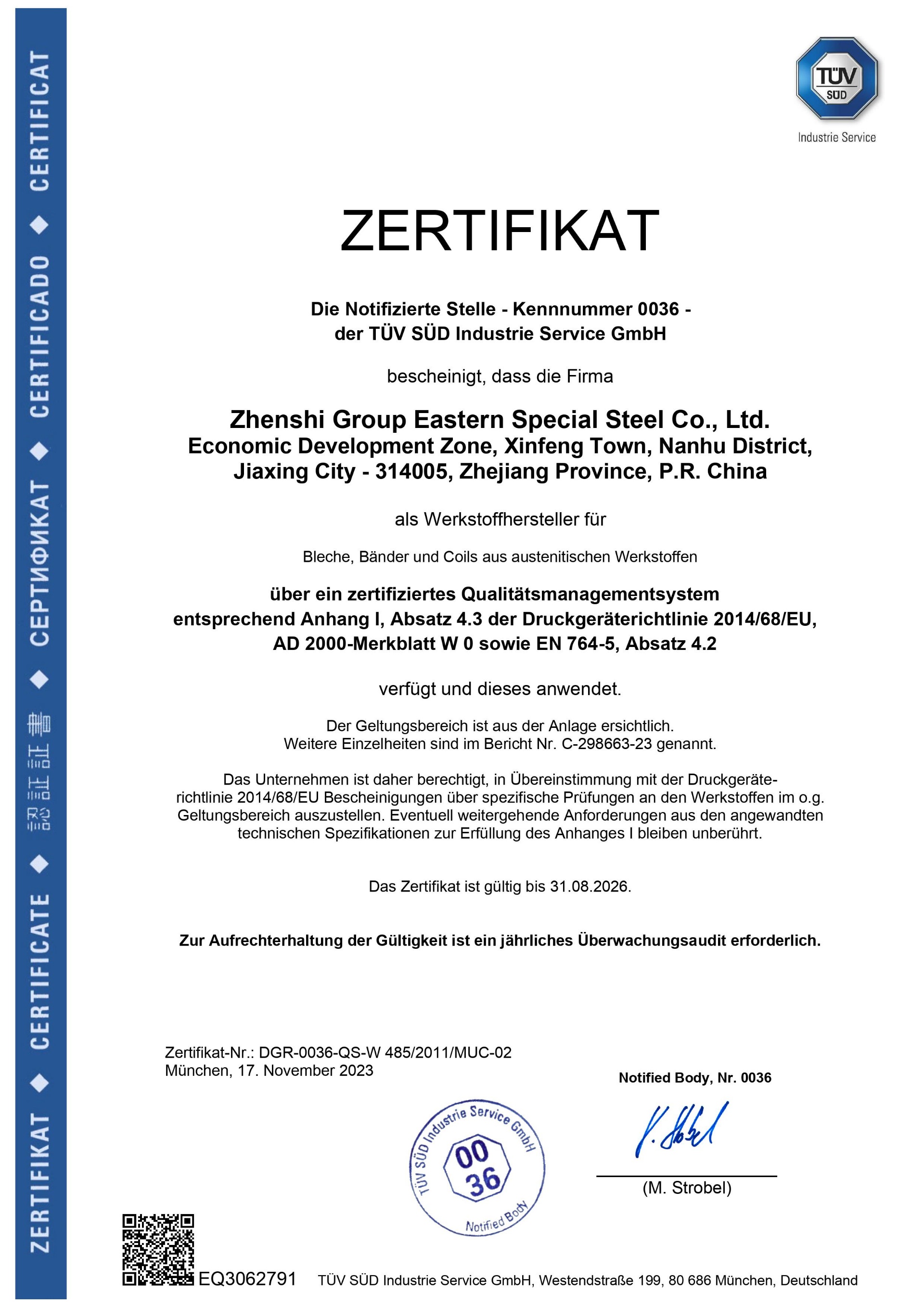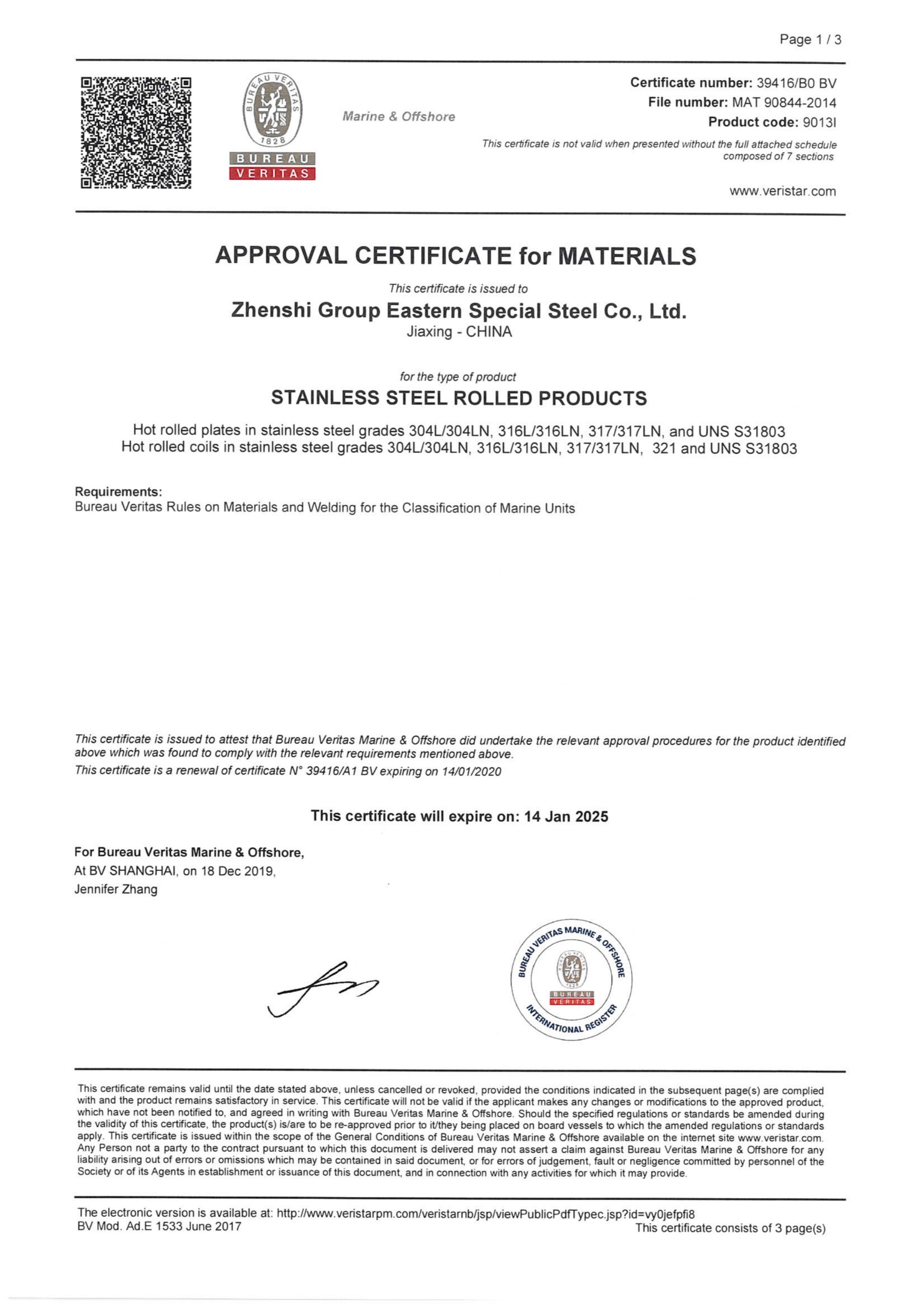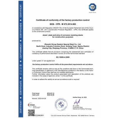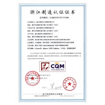東方特鋼先后通過了[ISO9001:2015質量管理體系][GJB 9001C-2017質量管理體系]認證,